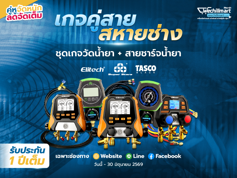 TASCO เกจวัดน้ำยาแอร์ R32, R410a Manifold Gauge พร้อมสายชาร์จน้ำยา รุ่น TB140RS