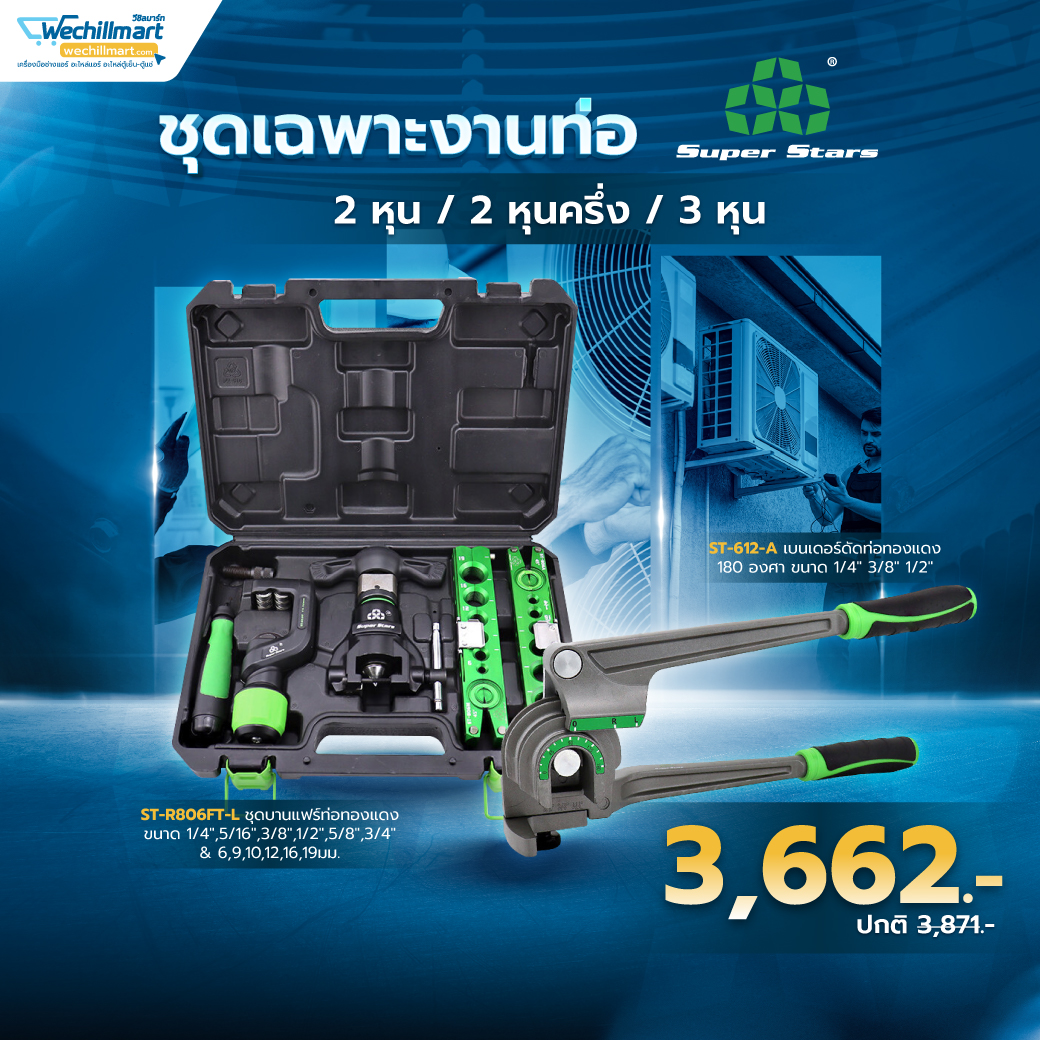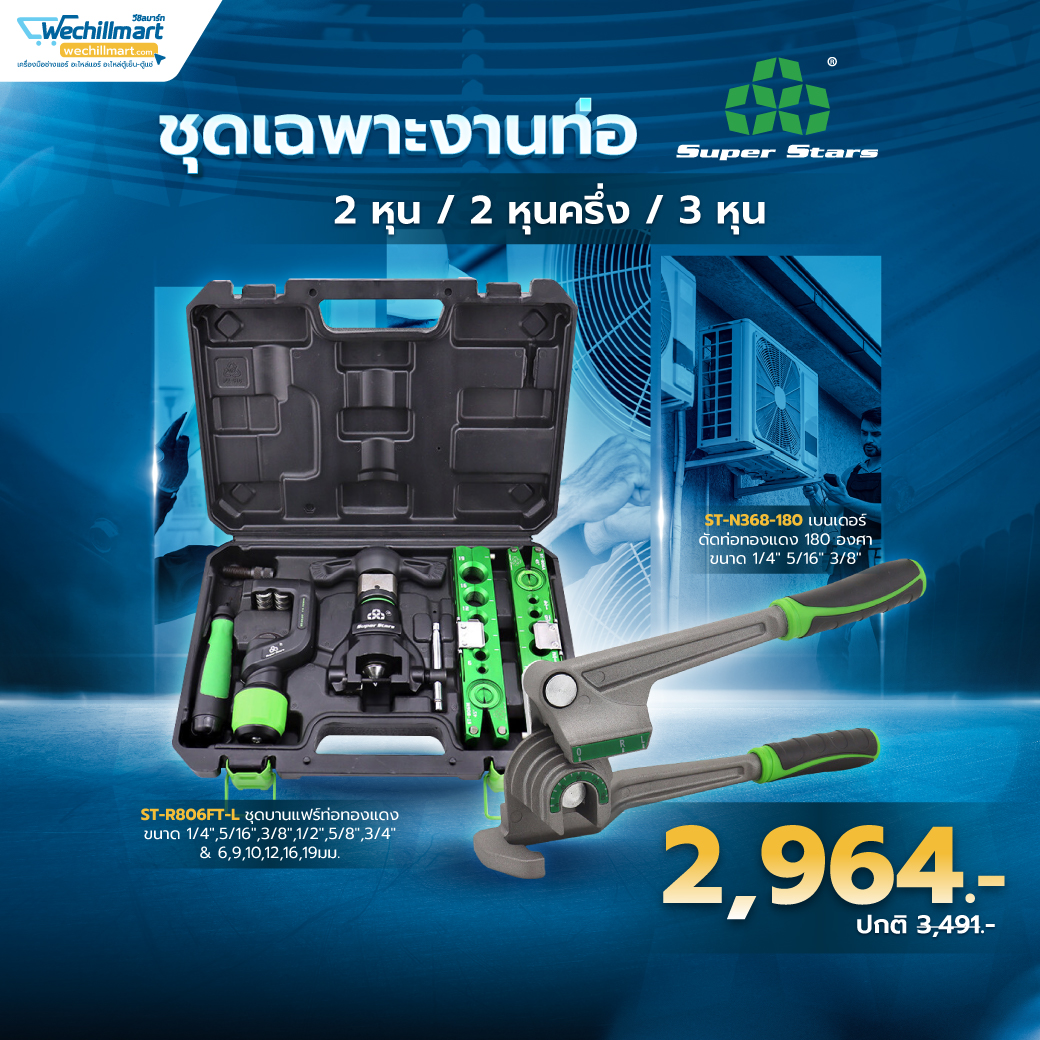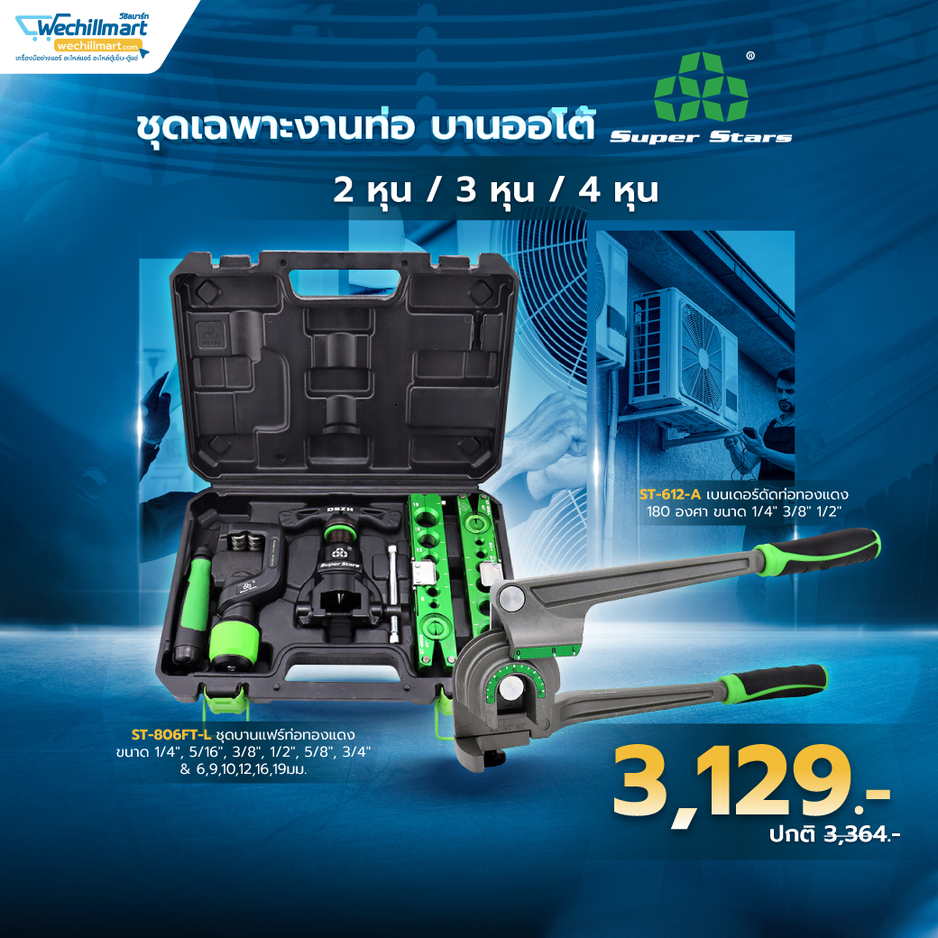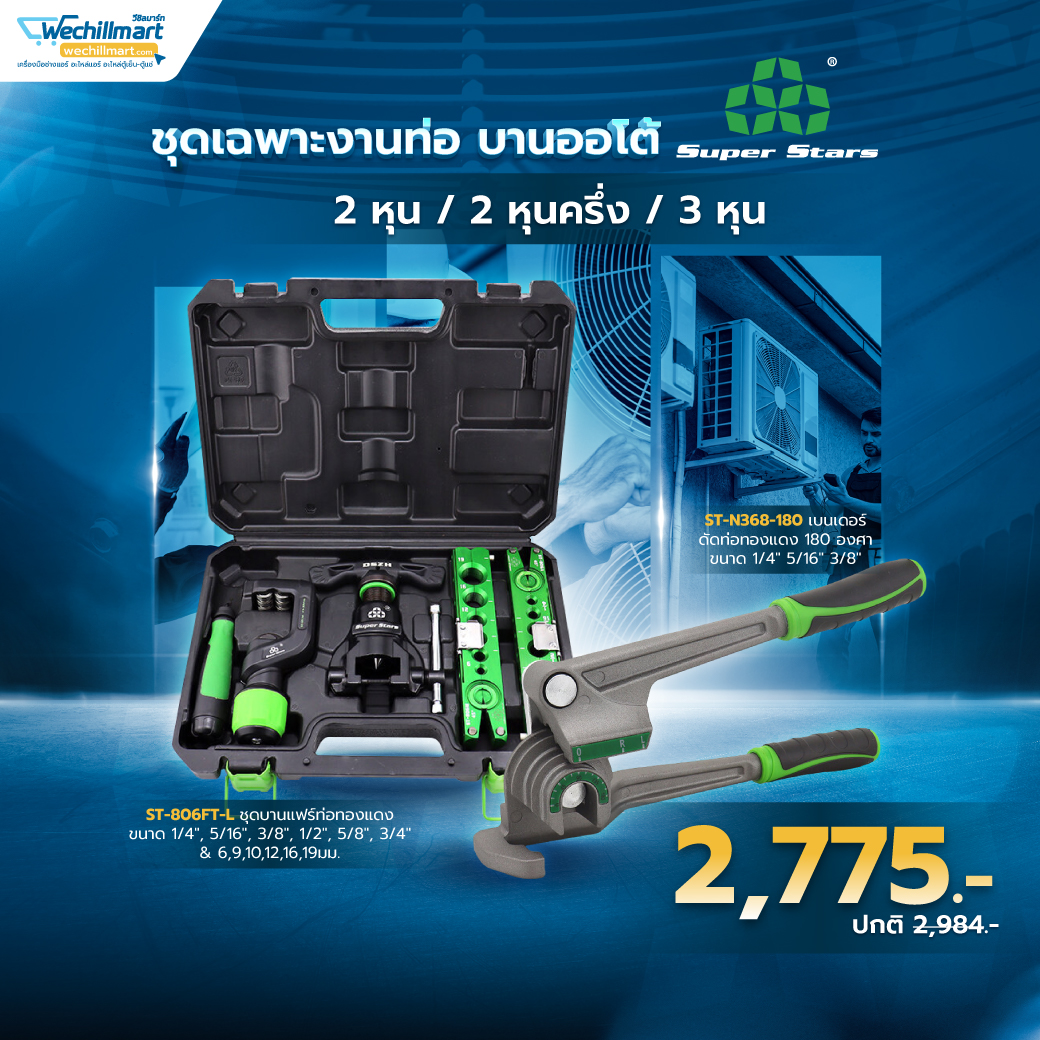 Super Stars ชุดบานแฟร์ท่อทองแดง มีคัตเตอร์ตัดท่อ รีมเมอร์ บานท่อ 2-6 หุน (6-19มม.) รุ่น ST-806FT-L