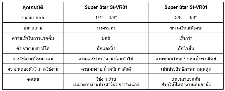 ตารางเปรียบเทียบสายแวคคั่ม Super Stars ST-VR01 vs ST-VR02