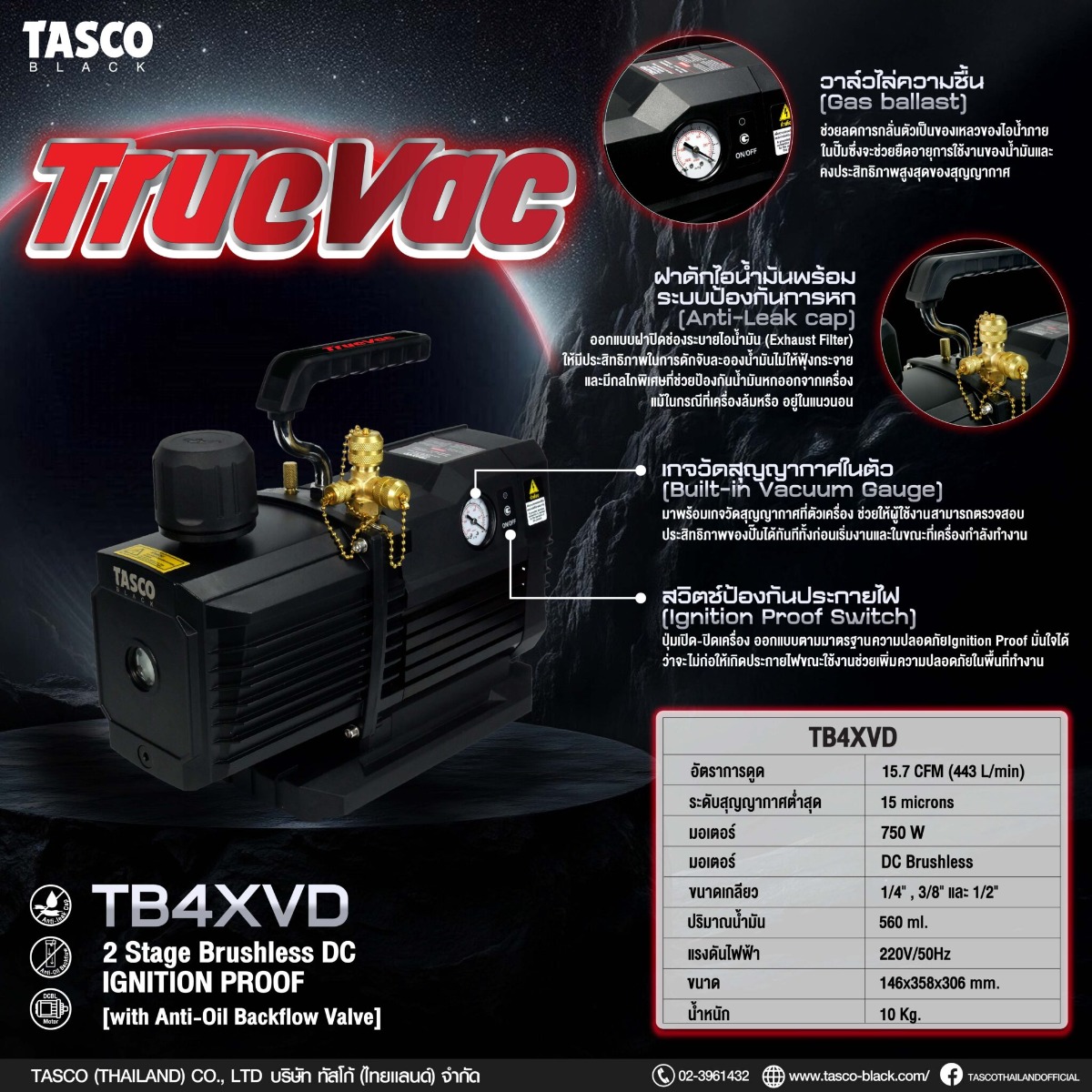 TASCO BLACK TB4XVD Vacuum Pump แวคคั่มปั๊ม 2 Stage ปั๊มสุญญากาศมอเตอร์ DC แบบไร้แปรงถ่าน